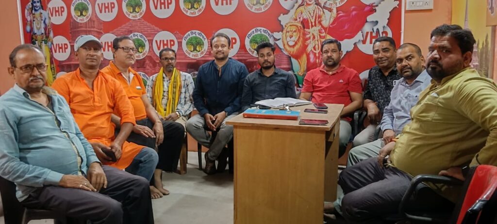 आज के बैठक में जिला मंत्री अमित तिवारी, बजरंग दल संयोजक संदीप प्रसाद गुप्ता, कोषाध्यक्ष राजीव गोयल, सेवा प्रमुख गोपाल कृष्ण तिवारी, गौ रक्षा प्रमुख भोला अग्रवाल, विद्यार्थी प्रमुख विवेक सिंह, प्रचार प्रसार प्रमुख सुरेश कुमार वर्मा, समरसता सह प्रमुख रवि तिवारी, दुर्गा वाहिनी संयोजिका कामिनी सिंह, कनक सिंह, विहिप नगर अध्यक्ष दीपक प्रसाद, नगर बजरंग दल संयोजक दिलीप गिरी, बजरंगी प्रकाश कुमार और बजरंगी रौशन कुमार की सहभागिता रही।