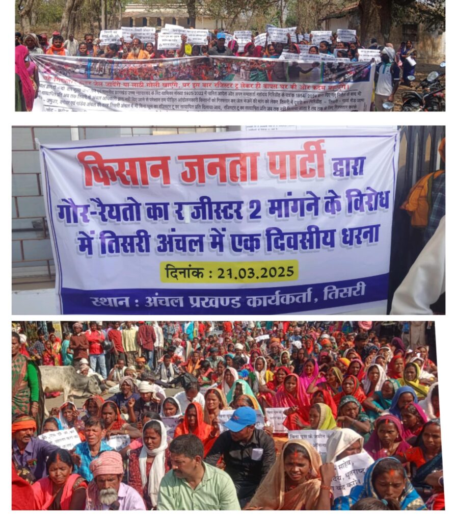 माननीय झारखंड उच्च न्यायालय के रिट याचिका संख्या 5925/2022 में पारित आदेश एवं अपर समाहर्ता महोदय गिरिडीह के 1854/2024 के निर्देश का अवहेलना कर तिसरी अंचल अधिकारी द्वारा रजिस्टर टू का सत्यापित नहीं देने के विरोध में किसान जनता पार्टी तिसरी अंचल कमिटी के बैनर तले नीलम कुमारी की अध्यक्षता में गुरुवार 27 मार्च को तिसरी में किसानों ने बिना घूस का रजिस्टर टू का सत्यापित देने अथवा गिरफ्तार कर जेल भेजने की मांग को लेकर दूसरी बार रोड जाम किया। रोड जाम कार्यक्रम को संबोधित करते हुए किसान जनता पार्टी के संयोजक दासो मुर्मू ने कहा कि तिसरी अंचल अधिकारी ने तिसरी अंचल के 32 मौजा के किसानों से रजिस्टर टू का सत्यापित प्रति देने हेतू 31 जनवरी 2024 को ही अंचल नजारत में रुपैया जमा करवा लिया है। तिसरी अंचल नजारत में जो रुपैया जमा किए हैं उसका 32 नाजीर रसीद भी सभी 32 मौजा के किसानों के पास है। पर रुपैया जमा करने के 13 – 14 महीना बाद भी जब अंचल कार्यालय तिसरी का चक्कर लगाते लगाते हम किसान परेशान हो गए तब मजबूर होकर हम किसान आज दूसरी बार सड़क जाम करने को विवश हुए। किसान जनता पार्टी के कार्यालय सचिव विजय कुमार ने कहा कि झारखंड राज्य में जमीन का सर्वे का काम शुरू हो चुका है, लातेहार और लोहरदगा दो जिला में सर्वे का काम पूरा भी हो गया है। दिसंबर 2024 में ही झारखंड सरकार ने झारखंड उच्च न्यायालय में हलफनामा दायर कर 6 महीना के अंदर झारखंड राज्य के सभी जिलों में सर्वे का काम पूरा करा लेंगे। इसलिए झारखंड में जमीन सर्वे का काम कभी भी शुरू हो सकता है। और यही कारण है कि तिसरी का भ्रष्ट अंचल अधिकारी रजिस्टर टू का सत्यापित प्रति नहीं दे रहा है ताकि सर्वे के समय रजिस्टर टू देने में मोटा रकम घूस में ले सके। किसान जनता पार्टी के संरक्षक भागीरथ राय ने कहा कि तिसरी अंचल अधिकारी भूमाफिया और दलालों को समाज सेवी बताकर तिसरी अंचल में धरना दिलाकर रजिस्टर टू नहीं देने का मांग कराकर लोगों को दिग्भ्रमित कराने का प्रयास कर रहे है जो प्रशासन के बौखलाहट को दर्शाता है। किसान जनता पार्टी के संरक्षक सुकुल नारायण देव ने कहा कि अनुमंडल पदाधिकारी खोरीमहुआ कहते हैं कि जिस तरह से किसी व्यक्ति के बैंक खाता में कितना रुपैया है यह बात दूसरे को नहीं बताया जाता है ठीक उसी प्रकार रजिस्टर टू जिसके नाम पर है उसी को दिया जा सकता है। इसलिए अनुमंडल पदाधिकारी खोरीमहुआ से आग्रह होगा कि यदि उनमें साहस है तो वे माननीय झारखंड उच्च न्यायालय और अपर समाहर्ता महोदय गिरिडीह से पूछें कि किसान जनता पार्टी के केंद्रीय कमिटी अध्यक्ष अवधेश कुमार सिंह को ही गिरिडीह जिला के सभी मौजा के रजिस्टर टू का सत्यापित प्रति देने का आदेश क्यों किए? तिसरी अंचल के किसान जनता पार्टी के सभी सदस्यों और 