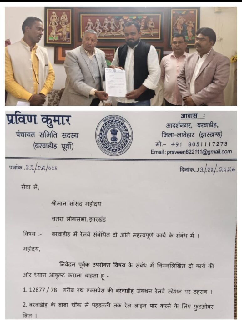 बरवाडीह में ट्रेनों के ठहराव व सुविधाओं की मांग तेज, नौ सूत्री ज्ञापन सौंपा गया