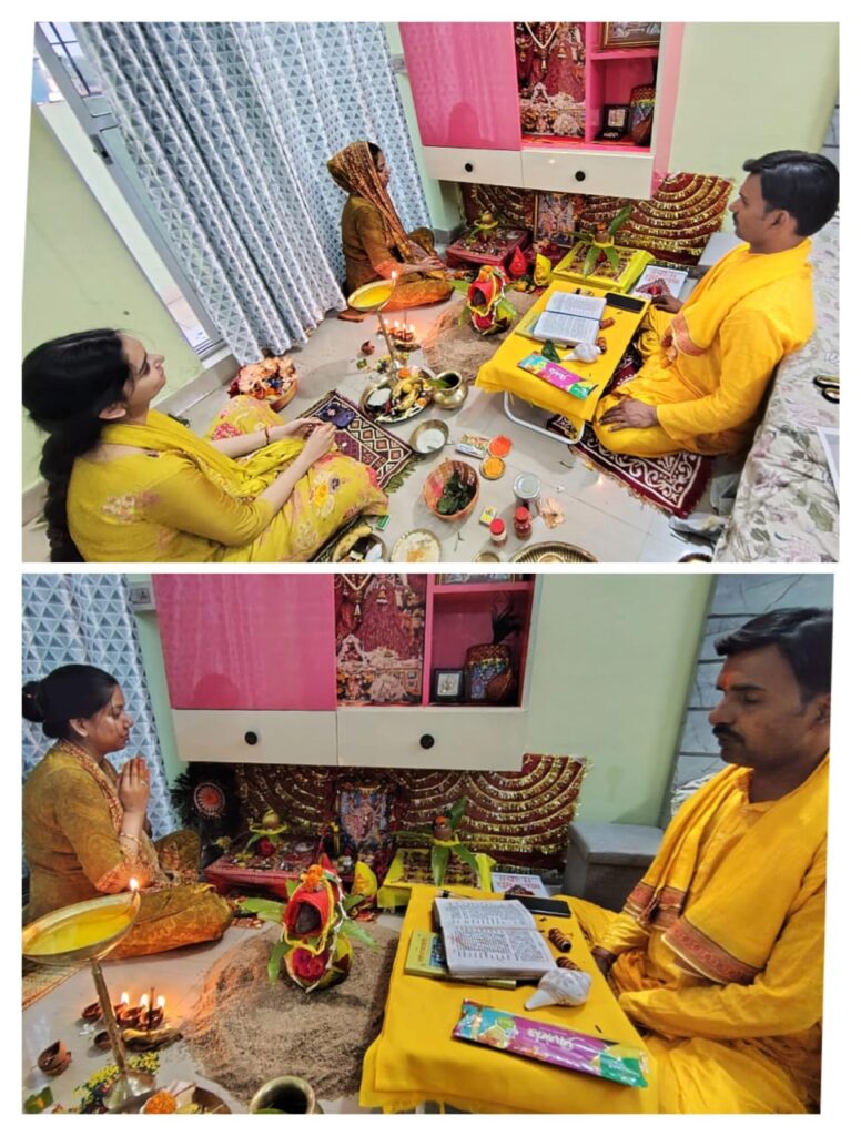 चैत्र नवरात्रि की शुरुआत होते ही माँ दुर्गा की आराधना सभी जगह शुरुआत हो गयी है। श्री प्रोफेशनल की निदेशक कोमल राय द्वारा अपने निवास स्थान में कलश स्थापना किया। राष्ट्रीय बजरंग दल के जिला अध्यक्ष गौरव कुमार अंशु ने बताया कि सनातन परंपरा के अनुसार हमारा वर्ष चैत्र शुक्ल प्रतिपदा को शुरू होता है, इसी के साथ कलश स्थापना कर नवरात्रि की प्रारम्भ भी होती है। प्रकृति भी नववर्ष का स्वागत करने के लिए अपना रूप बदलती है, सभी वृक्षो में नए पत्ते आ जाती है। सभी सनातनियो को अपने घरों में दीपक जला कर, पूजन कर नववर्ष मनाना चाहिए। सभी सनातन धर्मावलम्बीयों को नववर्ष की ढेर सारी शुभकामनाएं।