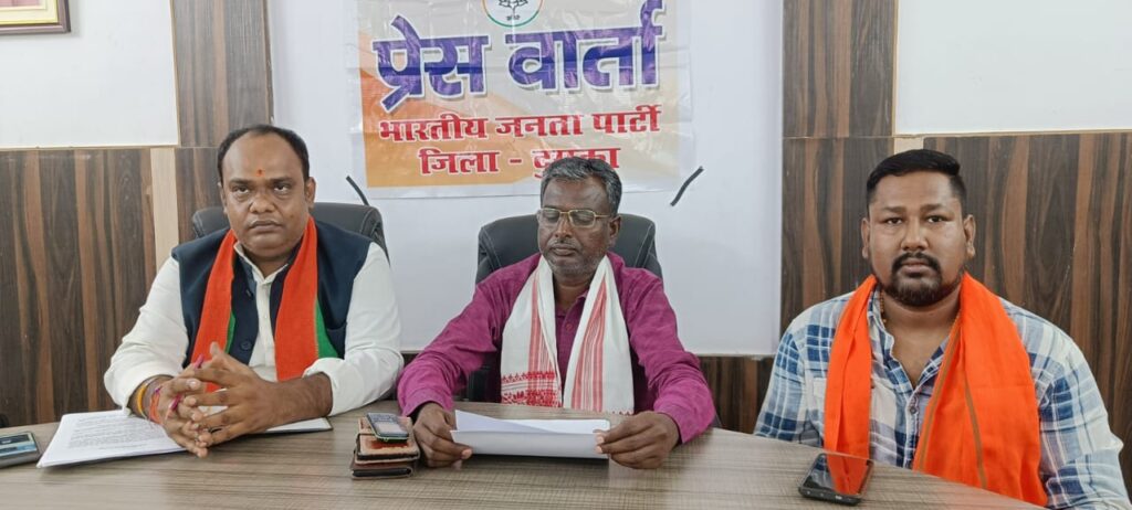 दुमका= परिसदन में दुमका लोकसभा के पूर्व सांसद श्री सुनील सोरेन जी एवं भाजपा जिलाध्यक्ष श्री गौरवकांत जी ने संयुक्त रूप से GST 2.0 विषय पर प्रेस वार्ता को संबोधित किया। साथ में जिला महामंत्री डॉ० पवन केसरी,जिला मीडिया सह प्रभारी नवल किस्कू मौजूद रहे।