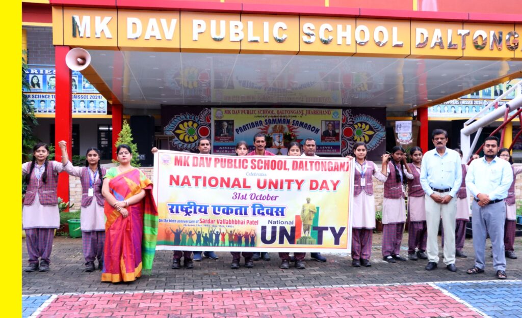 31 अक्टूबर 2025 को एम.के.डी.ए.वी. पब्लिक स्कूल डालटेनगंज में स्वतंत्र भारत के शिल्पकार, प्रथम गृह मंत्री, लौह पुरुष सरदार वल्लभभाई पटेल की 150 वीं जयंती मनाई गई। इस अवसर पर विद्यालय की प्राचार्य श्रीमती इंद्राणी चटर्जी ने विद्यालय के वरिष्ठ शिक्षकों के साथ पटेल जी के चित्र के समक्ष दीप प्रज्वलित कर तथा पुष्पार्चन कर कार्यक्रम का शुभारंभ किया। तत्पश्चात विद्यालय के वरिष्ठ परिसर के छात्रों ने मानव श्रृंखला निर्मित कर एकता का संदेश दिया।