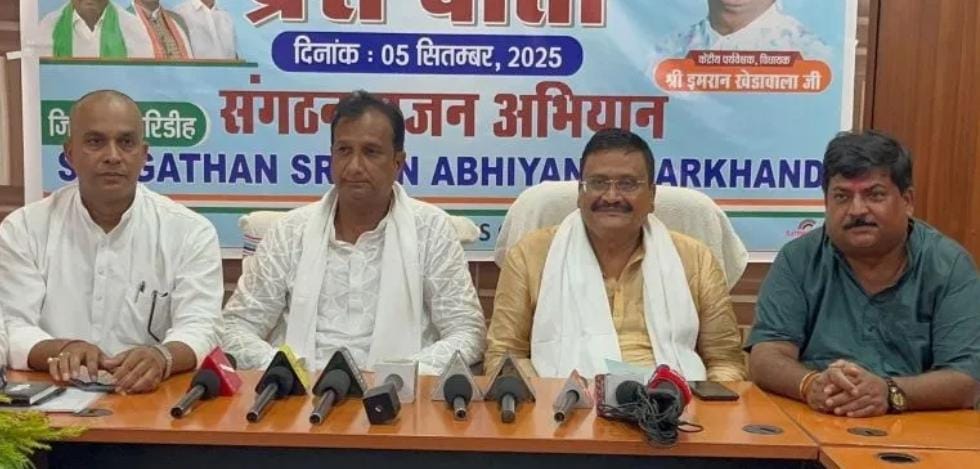 कांग्रेस पार्टी के संगठन सृजन अभियान के तहत आज गिरिडीह जिला कांग्रेस कमिटी की ओर से एक विशेष बैठक आयोजित की गई। यह बैठक नए परिषदन भवन में संपन्न हुई, जिसमें बतौर पर्यवेक्षक अखिल भारतीय कांग्रेस कमिटी (एआईसीसी) द्वारा नियुक्त गुजरात के जमालपुर विधानसभा क्षेत्र के विधायक इमरान खेड़ावाला शामिल हुए।