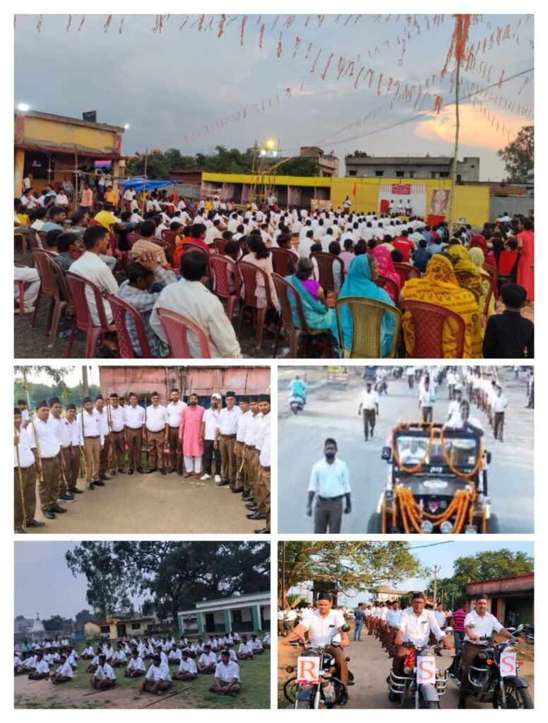 यह आयोजन समाज के हर वर्ग को जोड़ने और राष्ट्र निर्माण में योगदान देने का प्रयास होगा।अंत में स्वयंसेवकों स्वयंसेवकों ने संघ प्रार्थना की।वहीं विजयादशमी उत्सव पर माननीय राजीव कांत जी सह प्रांत प्रचारक झारखंड, खण्ड कार्यवाह संतोष जी , मुख्य अतिथि संतोष राणा जी ने संयुक्त रूप से मां दुर्गा के समक्ष शस्त्र पूजन किया। स्वयंसेवकों को संबोधित करते हुए राजीव कांत जी ने कहा कि भारत प्रारंभ से ही विश्व गुरु रहा है। संघ की नित्य शाखा से व्यक्ति निर्माण होता है व्यक्ति से समाज और समाज से स्वच्छ राष्ट्र का निर्माण होता है।देश पर जब-जब संकट आया है स्वयंसेवकों ने बढ़-चढ़कर समाज की सेवा करता है कार्यक्रम में उपस्थित जिला कार्यवाह वीर प्रताप शिव जी,सह जिला कार्यवाह प्रयाग जी, विभाग सेवा प्रमुख गौरी शंकर, नगर कार्यवाह सोनू गुप्ता जी, जिला व्यवस्था प्रमुख बबलू कुमार संतोष खत्री, संजीव शर्मा, राजेश, सोमनाथ, रंजीत ,दिलीप साव जी, संदीप , मुकेश रंजन , राजकुमार जी अरविंद जी, रोहित, मंतोष जी ,शंभु जी,किशुन जी, आकाश जी, प्रमोद जी सहित काफी संख्या में स्वयंसेवक उपस्थित थे।