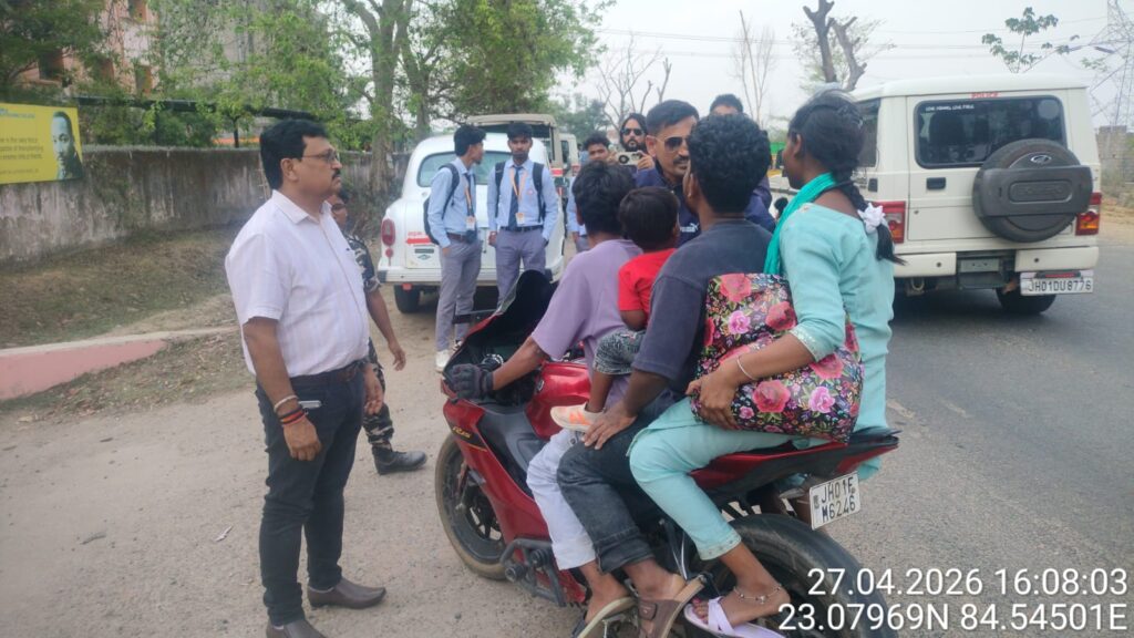 गुमला में ‘रोको और समझाओ’ अभियान: बिना हेलमेट चालकों को सड़क पर ही दी गई सुरक्षा की सीख