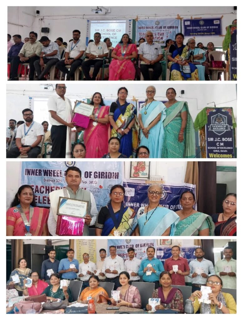 हर वर्ष की भांति इस वर्ष भी इनर व्हील क्लब गिरिडीह द्वारा शिक्षक दिवस के अवसर पर शिक्षा के क्षेत्र में सराहनीय कार्य करने वाले दो शिक्षकों दयानन्द कुमार, प्रधानाध्यापक, HE हाई स्कूल एवं मुन्ना प्रसाद कुशवाहा, प्रधाध्यापक,JC बोस गर्ल्स स्कूल (CM स्कूल ऑफ़ एक्सीलेंस )को एक प्रशंसा प्रमाण पत्र, एक उपहार तथा एक शाल प्रदान कर सम्मानित किया गया। इनके अथक प्रयासों से शहर के इन दोनों पुराने प्रतिष्ठित सरकारी विद्यालयों में बहुत बड़ा सकारात्मक परिवर्तन आया है।सन 1837 में स्थापित पहले स्कूल में कक्षा 9 से 10 तक, आर्ट्स, कॉमर्स एवं साइंस में लगभग 4000 विद्यार्थी शिक्षा ग्रहण कर रहे हैँ। दूसरे विद्यालय को को तो पहचानना भी असंभव सा है।