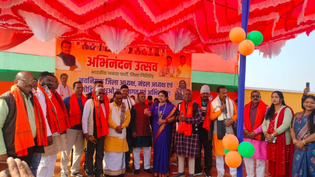गिरिडीह। भारतीय जनता पार्टी, जिला गिरिडीह की जिला मंत्री शालिनी वैश्कियार के नेतृत्व में नव-नियुक्त जिला अध्यक्ष, मंडल अध्यक्ष, मोर्चा पदाधिकारियों एवं मीडिया बंधुओं के सम्मान में भव्य अभिनंदन उत्सव समारोह का आयोजन किया गया। यह कार्यक्रम करनपुरा स्थित मिडवे ग्रीन में संपन्न हुआ।