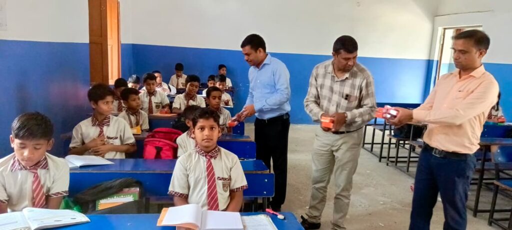 कैंब्रिज पब्लिक स्कूल में पंकज यादव सेवा केंद्र की पहल, छात्रों में ग्लूकोज व टूथपेस्ट का वितरण