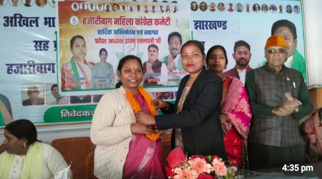 हजारीबाग : संगठन सृजन अभियान 2025 के अंतर्गत जिला कांग्रेस कार्यालय कृष्ण बल्लभ आश्रम में जिला महिला कांग्रेस के तत्वावधान एक महत्वपूर्ण बैठक का आयोजन किया गया । बैठक की अध्यक्षता जिला अध्यक्ष बेबी देवी ने की । बैठक में मुख्य अतिथि झारखंड प्रदेश महिला कांग्रेस की प्रदेश अध्यक्ष रमा खलको ने बैठक को संबोधित करते हुए कहा कि संगठन सृजन अभियान अपने अंतिम चरण पर है । इसलिए विशेषकर सभी जिम्मेदार पदाधिकारियों को अपना दायित्व तथा कर्तव्य को निष्ठापूर्वक समझना होगा । संगठन के व्यापक हित में उन्होंने जिला, प्रखंड, मंडल, पंचायत तथा बुथ लेवल एजेंट कार्यकर्ताओं को कांग्रेस कि विचारधारा को जन-जन तक पहूंचाने के का कार्य करें । उन्होंने कहा कि कांग्रेस का संगठन कैसे मजबूत हो, समाज के अंतिम व्यक्ति के घर तक संगठन की पहुंच कैसे बढ़े इसी सोच के साथ संगठन ने अधिक जान फुकने के की कवायद चल रही है । देश के तेजतर्रार नेता प्रतिपक्ष राहुल गांधी द्वारा उठाए जा रहे जन मुद्दों को सांगठनिक रणनीति से सफल बनाना है तब कहीं संगठन को गति और आन्दोलन को सफलता मिलेगी । जिला अध्यक्ष बेबी देवी ने कहा कि जिला कमिटी के नेतृत्व में लगातार भाजपा की केन्द्र सरकार के विरोध में आंदोलन किए जा रहें हैं । प्रखंड स्तर, मंडल स्तर, बुथ स्तर और बीएलए दो गठन का कार्य हो रहा है । संगठन में नए लोंगो को बड़े पैमाने पर जोड़ा जा रहा है । कार्यक्रम का संचालन चौपारण प्रखंड अध्यक्ष प्रिती गुप्ता जबकी धन्यवाद ज्ञापन जिला कांग्रेस के मीडिया अध्यक्ष निसार खान ने किया । मौके पर प्रदेश महासचिव मिनू सिंह, कल्पना भगत, अनस्तसिया मुर्मू, सुनैना देवी, ऊषा रानी, शबाना खातून, कंचन महतो, पूजा कुमारी, रिंकू देवी, गुड़िया देवी, शांति देवी, मुनिया देवी, धनवा देवी, फुलमति देवी, कौशल्या देवी, सरिता देवी, संजू देवी, मंजू देवी, चिंता देवी, रिना देवी, निशा देवी, सुजाता कुमारी, मुनिया देवी, दुलारी देवी, कंचन माला देवी, मुंदरी देवी, रूबी देवी, आरती कुमारी, सुजाता देवी, कंचन देवी, रीना देवी, मालती देवी, मोसेमात वीणा देवी, रूना देवी, वीणा देवी के अतिरिक्त कई महिला उपस्थित थे ।