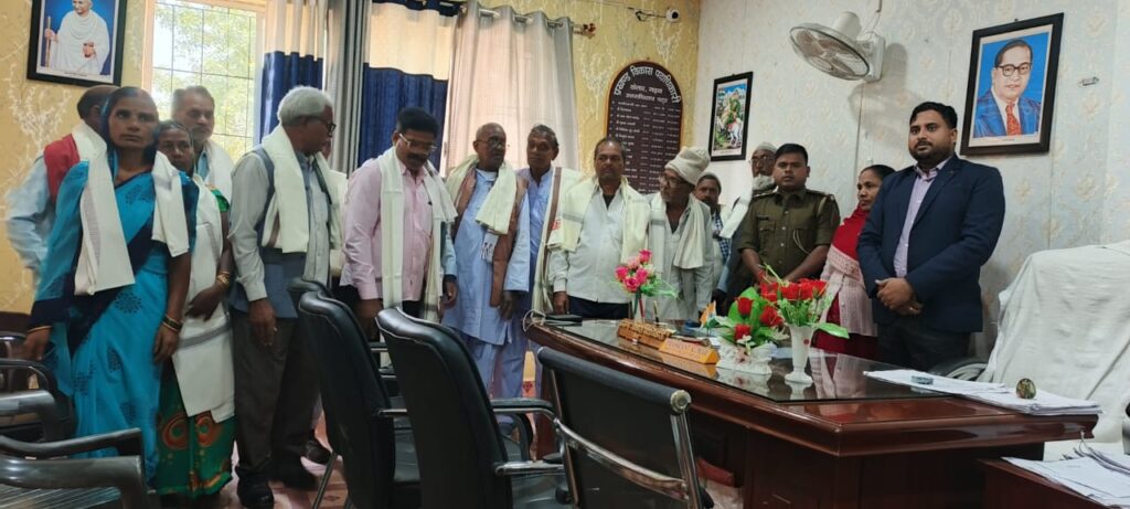 शीव कुमार सिंह, रामनरायण राम, सुदर्शन सिंह चेरो, नरेश बैठा, विनोद विश्वकर्मा, जवाहीर पासवान, गोबिंद सिंह, प्रेम पाल और अली हुसैन अंसारी को अंग वस्त्र देकर सम्मानित किया गया।