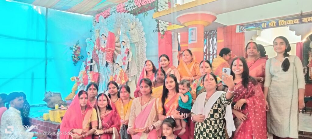 खोचा की रस्म पूरी होने के बाद बंगाली परंपरा के अनुरूप सिंदूर खेला का आयोजन हुआ। महिलाओं ने मां दुर्गा को सिंदूर अर्पित करने के साथ एक-दूसरे को भी सिंदूर लगाकर मंगलकामनाएँ दीं। इस अवसर पर मंदिर परिसर भक्तिमय माहौल से गूंज उठा।