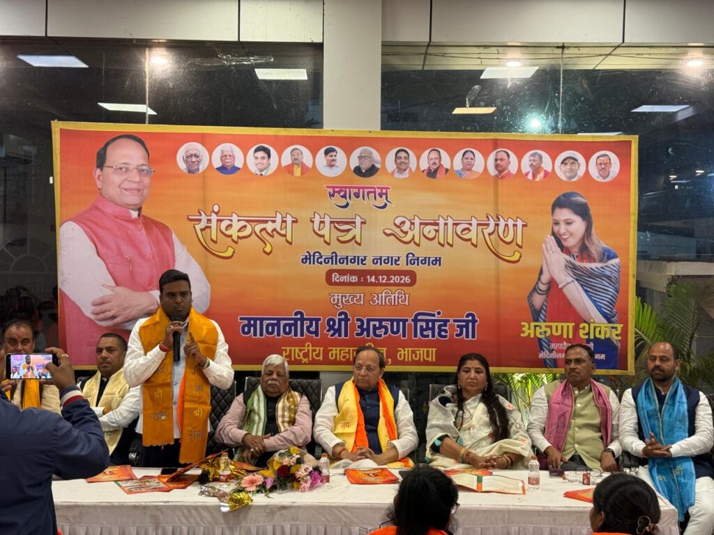 मेदिनीनगर में भाजपा प्रत्याशी अरुणा शंकर ने जारी किया ‘संकल्प पत्र’, विकास और जन-सुविधाओं की दी गारंटी