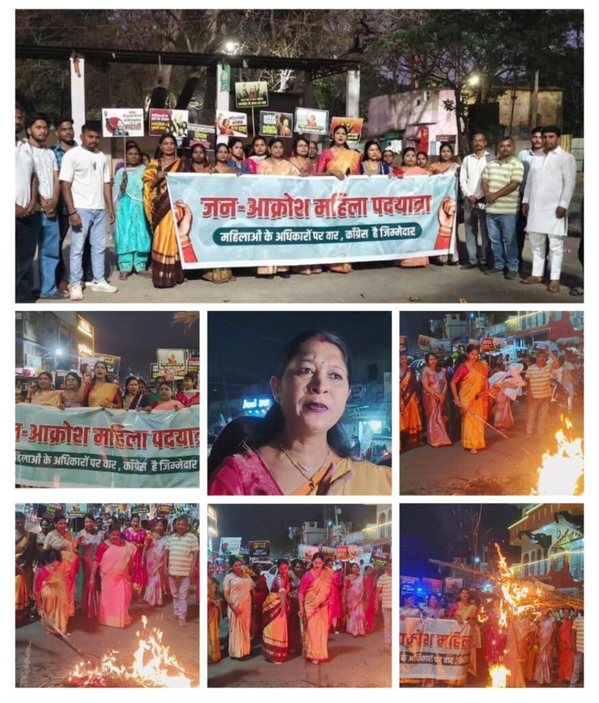 गिरिडीह: महिला आरक्षण के मुद्दे पर गिरिडीह में महिलाओं का गुस्सा सड़कों पर फूट पड़ा। भाजपा युवा मोर्चा और महिला मोर्चा के संयुक्त तत्वावधान में “जन आक्रोश महिला पदयात्रा” निकाली गई, जिसमें बड़ी संख्या में महिलाओं ने भाग लेकर विरोध प्रदर्शन किया पदयात्रा के दौरान प्रदर्शनकारियों ने कांग्रेस पर संसद में नारी शक्ति वंदन अधिनियम को पारित नहीं होने देने का आरोप लगाया। महिलाओं ने इसे उनके अधिकारों पर सीधा हमला बताते हुए नारेबाजी की और कांग्रेस नेता राहुल गांधी का पुतला दहन कर विरोध जताया कार्यक्रम को संबोधित करते हुए भाजपा महिला मोर्चा की प्रदेश उपाध्यक्ष प्रो. विनीता ने कहा कि महिलाओं को 33 प्रतिशत आरक्षण नहीं मिलना देश की आधी आबादी के साथ अन्याय है। उन्होंने कहा कि इस विधेयक के लागू होने से लोकसभा और राज्य विधानसभाओं में महिलाओं की भागीदारी बढ़ेगी और नीति-निर्धारण में उनकी भूमिका मजबूत होगी उन्होंने कांग्रेस पर महिला विरोधी होने का आरोप लगाते हुए कहा कि पार्टी महिलाओं को उनके अधिकारों से वंचित रखने की राजनीति कर रही है, जबकि केंद्र सरकार महिला सशक्तिकरण की दिशा में लगातार काम कर रही है इस मौके पर प्रभारी जिला उपाध्यक्ष संगीता सेठ, संजू देवी, वार्ड पार्षद पूजा देवी, सरिता शर्मा, बबली साव, युवा मोर्चा जिलाध्यक्ष मिथुन चंद्रवंशी, वार्ड पार्षद समीर दीप, देवराज, सुरेश मंडल समेत बड़ी संख्या में महिलाएं मौजूद रहीं कार्यक्रम के दौरान 25 अप्रैल को रांची के मोराबादी मैदान में प्रदेश स्तरीय महिला प्रदर्शन आयोजित करने की घोषणा भी की गई, जिसमें बड़ी संख्या में महिलाओं के शामिल होने की संभावना जताई गई।