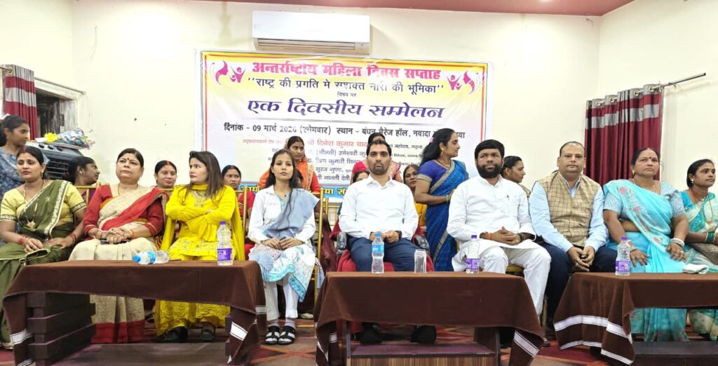 जल सहिया संघर्ष समिति की ओर से नवादा मोड़ स्थित बंधन मैरिज हॉल में अंतर्राष्ट्रीय महिला दिवस सप्ताह के रूप में राष्ट्र की प्रगति में सशक्त नारी का योगदान विषय पर जिला सम्मेलन का आयोजन किया गया। सम्मेलन के मुख्य अतिथि एवं उद्घाटनकर्ता उपायुक्त दिनेश कुमार यादव एवं विशिष्ट अतिथि नामधारी कॉलेज के प्राचार्य श्रीमती नीतू सिंहा, आईएमए सचिव डॉ नीतू सिंह एवं डॉ अनिता कुमारी तूफानी तथा मुख्य वक्ता के रूप में समिति के मुख्य संरक्षक सूरज गुप्ता एवं युवा समाजसेवी संतोष जायसवाल उपस्थित थे।कार्यक्रम की शुरुआत उपायुक्त के द्वारा दीप प्रज्वलित कर किया गया। मौके पर सम्बोधित करते हुए उपायुक्त दिनेश कुमार यादव ने कहा कि महिलाएं किसी पहचान की मोहताज नहीं है, पहले की अपेक्षा बदलाव हुआ है। ईश्वर ने पुरुष और महिला के रूप में इंसान की रचना की है हमलोगों को इसे बराबरी दृष्टि से देखना चाहिए।उन्होंने कहा कि आज दुनिया के कई देश ऐसे हैं जहां पर महिलाओं को पढ़ने एवं अकेले बाहर घूमने की इजाजत नहीं है परन्तु भारतीय नारी को समानता का अधिकार है। उन्होंने कहा कि महिला पुरुष का बराबर सहभागिता सरकार की हर योजनाओं में दिखती है। अब समाज को अपने अंदर की भावनाओं को बदलना होगा।उन्होंने कहा कि लड़का लड़की में कोई फर्क नहीं है आज लड़कियां हवाई जहाज उड़ाने के साथ राजनीति,प्रशासनिक सेवा तथा अन्य क्षेत्रों में भी समाज का नाम रौशन कर रहीं हैं,जरूरत है हम सबों को महिलाओं की मान सम्मान का ख्याल रखते हुए उन्हें स्वतंत्र रूप से कार्य करने की आजादी दें। जल सहिया संघ के मुख्य संरक्षक सूरज गुप्ता ने कहा कि महिलाओं के हक,अधिकार उनकी सुरक्षा और सम्मान हम सबों का प्रथम कर्तव्य है और जब महिलाएं मानसिक रूप से आजाद होगीं तो देश और समाज की तरक्की को कोई नहीं रोक सकता है। उन्होंने कहा कि महिलाओं की सम्मान जिस घर में होती है वहां देवी देवताओं का निवास होता है। यह सम्मेलन समाज में मील का पत्थर साबित होगी।विशिष्ट अतिथि डॉ नीतू सिंह एवं प्रो अनीता तूफानी तथा डॉ नीता सिंहा ने कहा कि हम महिलाएं जगत की जननी हैं। अपने स्वावलंबन के साथ हमें हर क्षेत्र में सकारात्मक सोच से आगे बढ़ाने की जरूरत है।हम महिलाओं को सिर्फ 8 मार्च को सम्मानित करने से नहीं बल्कि साल के सभी दिन महिलाओं को इज्जत मिलनी चाहिए।उन्होंने कहा कि बेटी आज के परिवेश में हर घर की शान है हमें बेटी पढ़ाओ बेटी बचाओ अभियान को भी गति देने की जरूरत है।उन्होंने कहा कि यह कार्यक्रम से समाज में अच्छा संदेश जाएगा।कार्यक्रम की अध्यक्षता जल सहिया समिति के अध्यक्ष मालती देवी एवं संचालन कार्तिकी आर्या ने किया। मौके पर मधु देवी, सुनीता देवी,अनीता देवी,पूर्णिमा कचछप,सुधा देवी,रीना 