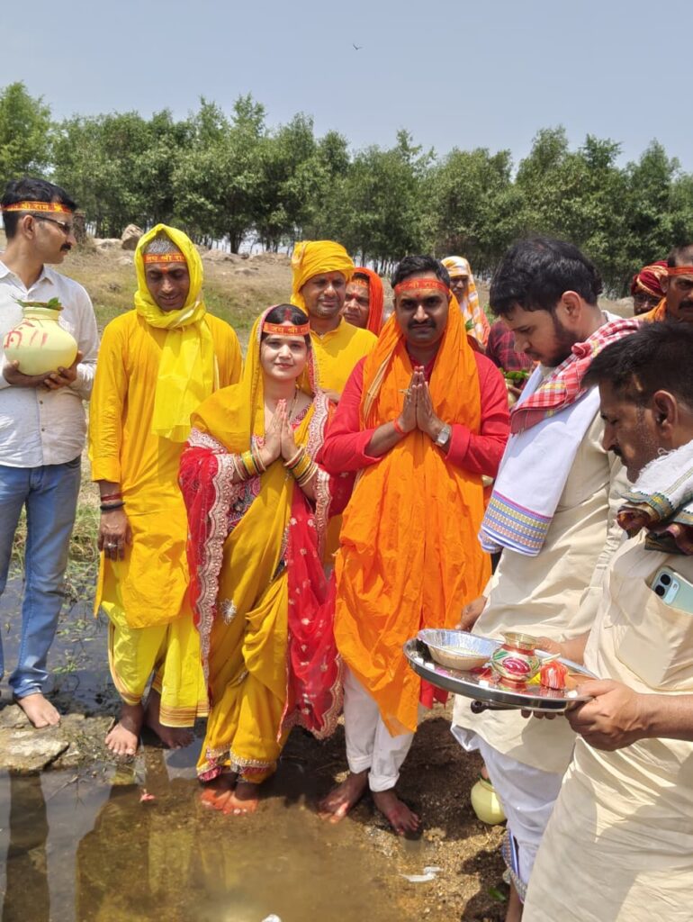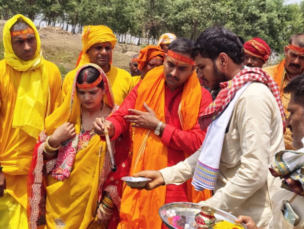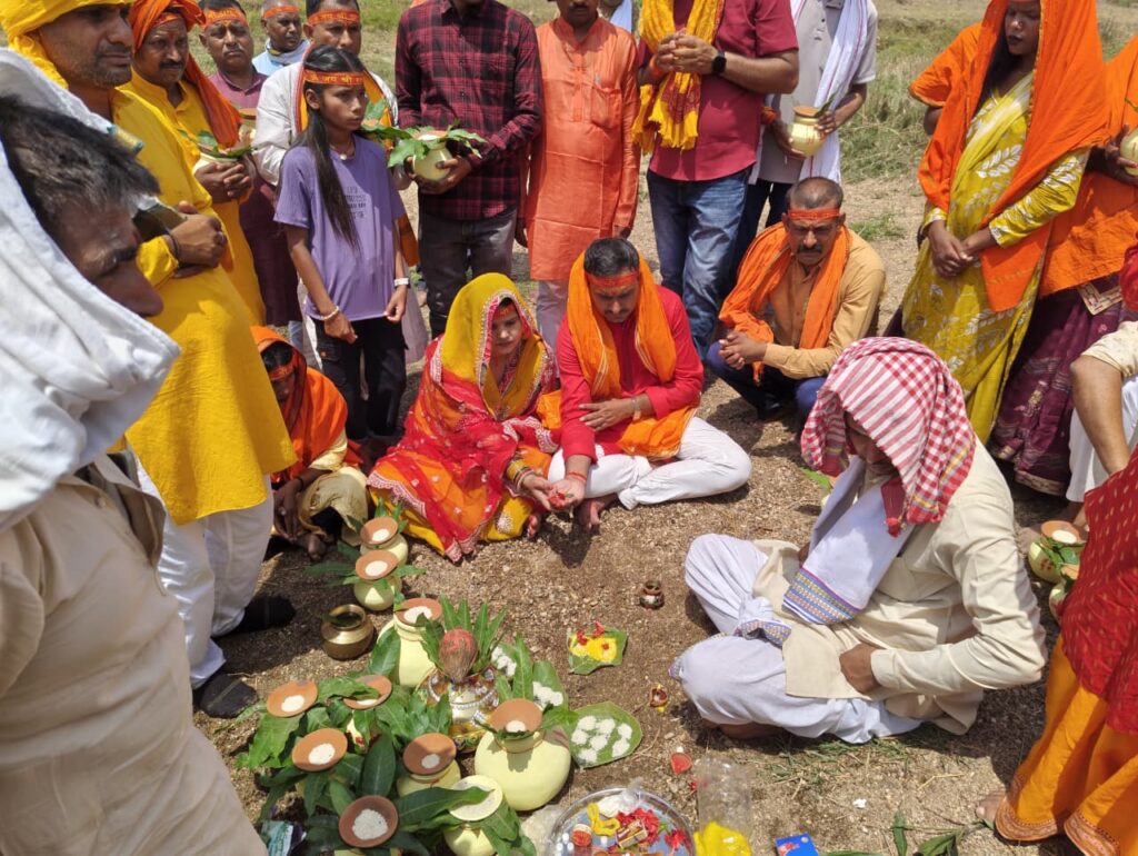 नौडीहा बाजार: पलामू जिले के नौडीहा बाजार थाना में शिव मंदिर में प्राण प्रतिष्ठा से पहले भव्य कलश यात्रा का आयोजन किया जाता है,थाना परिसर में बने शिव मंदिर का प्राण प्रतिष्ठा को लेकर गाजे बाजे और अपने पूरी टीम के साथ मुख्य यजमान थाना प्रभारी अमित द्विवेदी पत्नी संग कलश उठाकर नगर भ्रमण करते हुए बंटाने नदी पर पहुंच कर बनारस से आए हुए आचार्य के द्वारा वैदिक मंत्रों उच्चारण कर पूजा करके कलश में जल भर कर पुनः नगर भ्रमण करते हुए थाना परिसर में बने मंदिर में कलश स्थापना किया थाना प्रभारी अमित द्विवेदी ने बताया कि कल 7 बजे से 11 बजे तक पूजा 24 घंटे का अखंड कीर्तन और मूर्ति भगवान हनुमान शिव परिवार संग नगर भ्रमण तथा 29 तारीख को प्राण प्रतिष्ठा एवं भव्य भंडारा का आयोजन किया गया है