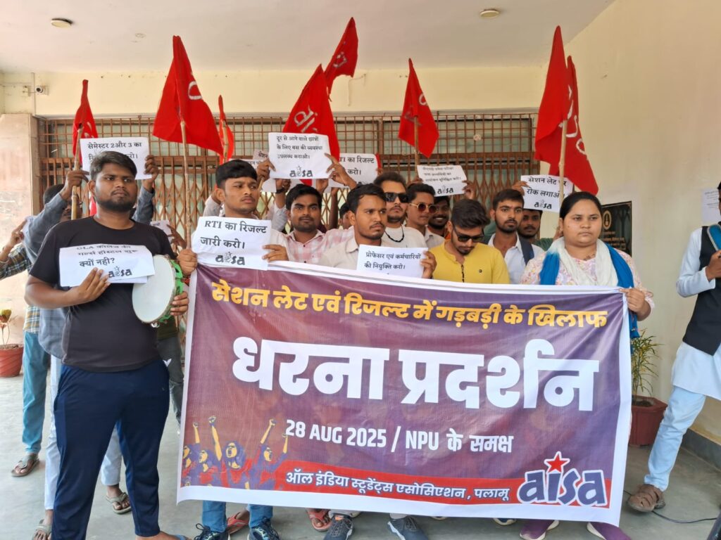 मेदिनीनगर: ऑल इंडिया स्टूडेंट्स एसोसिएशन (आइसा) के बैनर तले नीलांबर पीतांबर विश्वविद्यालय (एनपीयू) में छात्रों ने विभिन्न मांगों को लेकर एक जोरदार विरोध प्रदर्शन किया। यह प्रदर्शन विश्वविद्यालय के प्रशासनिक भवन के सामने किया गया, जिसमें छात्र-छात्राओं ने अपनी समस्याओं को लेकर तीखे नारे लगाए।