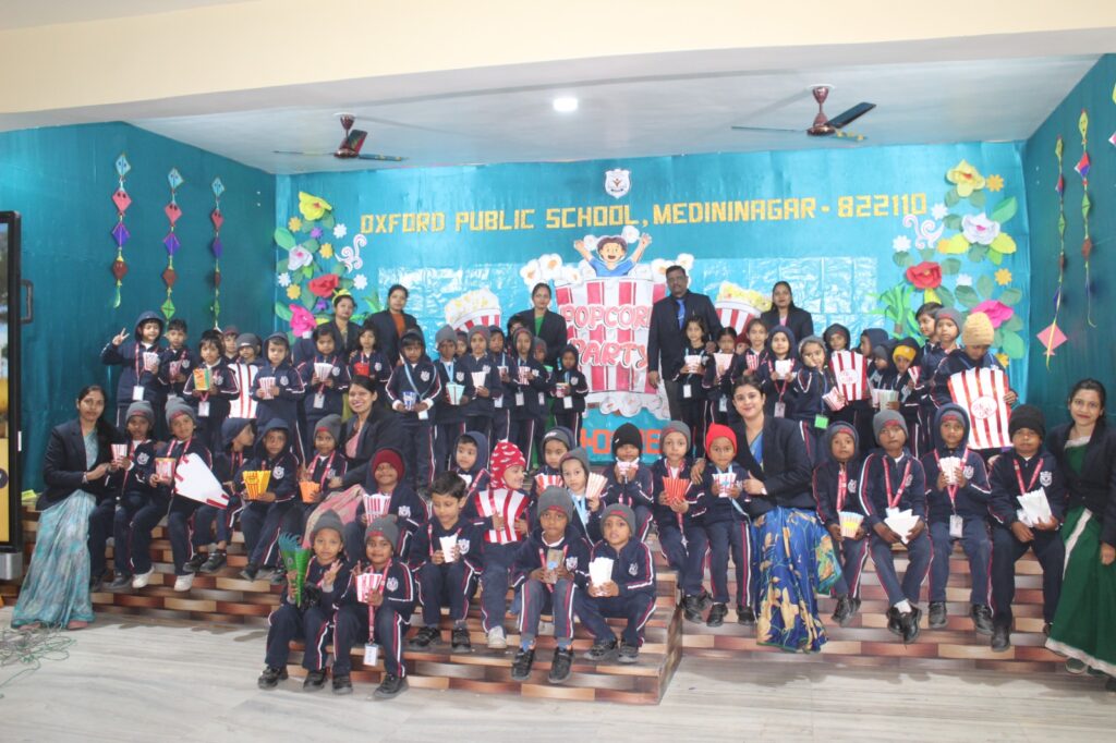 ऑक्सफोर्ड पब्लिक स्कूल, न्यू टाउनशीप, शाहपुर, मेदिनीनगर में पॉपकॉर्न पार्टी का आयोजन हर्षाेल्लास के साथ किया गया। नई शिक्षा नीति के दिशा-निर्देशों के अनुरूप फाउंडेशनल स्टेज के अंतर्गत प्री-नर्सरी से कक्षा तृतीय तक के विद्यार्थियों ने इस कार्यक्रम में सक्रिय रूप से भाग लिया।