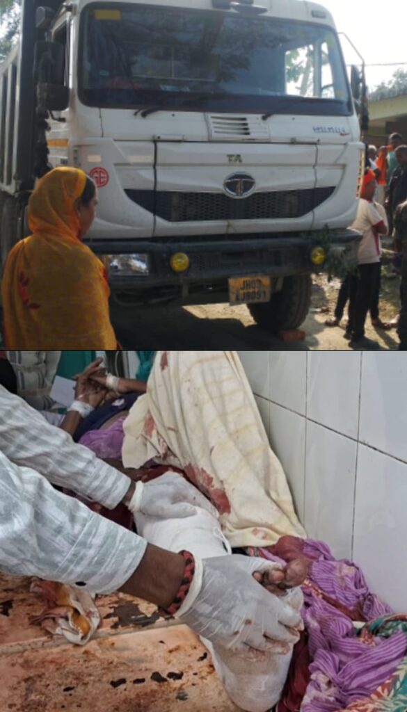पलामू जिले में सड़क हादसा — नौडीहा थाना क्षेत्र के खदिहा टोला विस्फोटा जमुआ चौक के पास ट्रक की चपेट में आने से महिला गंभीर रूप से घायल, अस्पताल में चल रहा इलाज।
