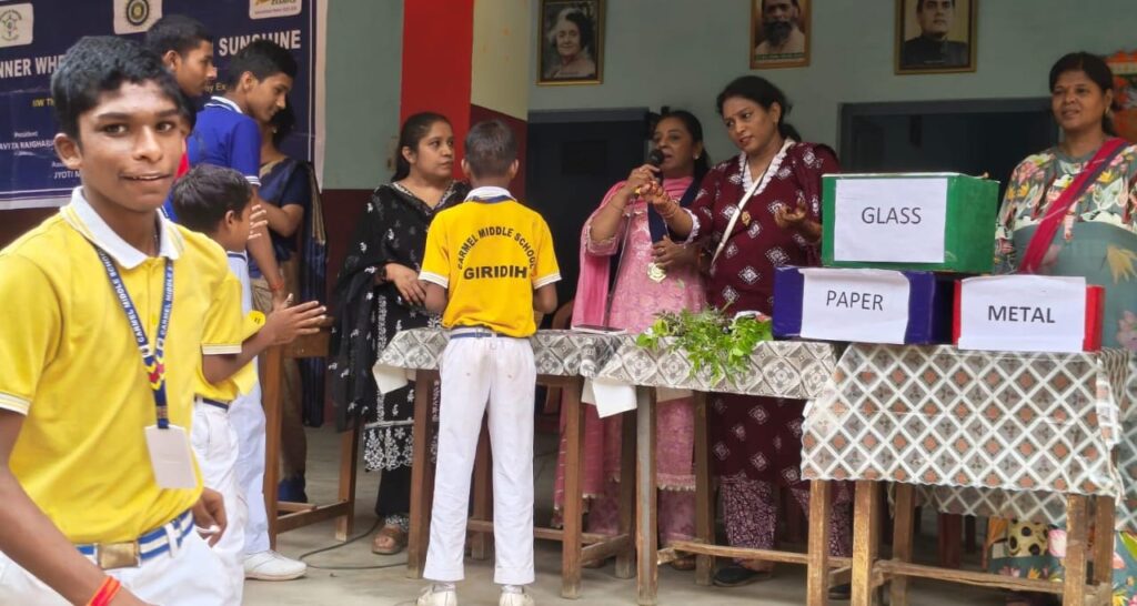 आज 27 अगस्त 2025 को इनरव्हील क्लब ऑफ गिरिडीह सनशाइन के तत्वावधान में आज हिंदी कार्मेल स्कूल में एक जागरूकता कार्यक्रम का आयोजन किया गया, जिसका मुख्य उद्देश्य छात्रों को ” रिड्यूस, रियूस, रीसाइकिल” के महत्व से अवगत कराना था।