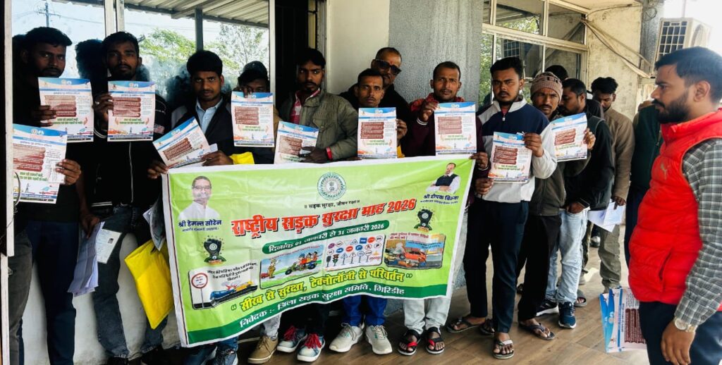 राष्ट्रीय सड़क सुरक्षा माह 2026 के 15वे दिन के तहत जिला परिवहन पदाधिकारी श्री संतोष कुमार के निर्देशानुसार आज LL लाइसेंस बनवाने आए हुए कैंडिडेट को जिला परिवहन कार्यालय में रोड़ सेफ्टी मैनेजर मो० वाजिद के द्वारा प्रशिक्षु आवेदकों (LL कैंडिडेट) को सड़क सुरक्षा एवं यातायात नियमों का अनुपालन के प्रति जागरूक किया । और साथ में हिट एंड रन एवं गुड सेमिरिथन योजना के बारे में भी जागरूक किया और बताया गया की सड़क पर वाहन चलाते समय ट्रैफिक नियमों का पालन करें। सभी लोगो के बीच रोड़ सेफ्टी हैण्डबुक और रोड़ सेफ्टी पम्पलेट कि भी वितरण कि गई।