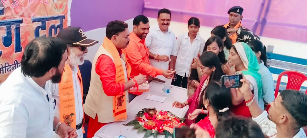 रक्षा बंधन के शुभ अवसर पर आज विश्व हिंदू परिषद _ बजरंग दल, पलामू के जिला कार्यालय में पलामू प्रक्षेत्र के पुलिस उप महानिरीक्षक श्रीमान नौशाद आलम का शुभागमन हुआ। बहनों से राखी बंधवाने के बाद श्रीमान पुलिस उप महानिरीक्षक ने बताया कि रक्षाबंधन भाई-बहन के बीच प्रेम, स्नेह और अटूट बंधन के प्रतिक है। यह त्योहार भाई-बहन के रिश्ते की मजबूती और एक-दूसरे की रक्षा करने के वादे की स्वीकारोक्ति है। रक्षाबंधन भाई-बहन के बीच प्रेम और सुरक्षा के अटूट बंधन का उत्सव है। आज के दिन हम सबको शपथ लेनी चाहिए कि दुनिया की सभी बहनों को अपनी सगी बहन के तरह ही सम्मान, प्यार, आदर और सुरक्षा देंगें।