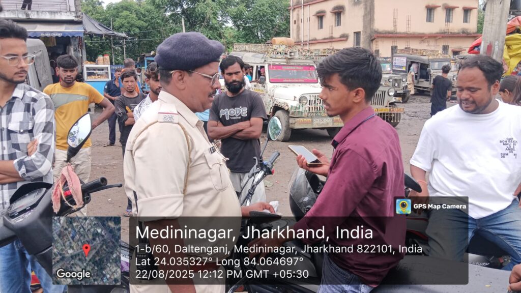 सदीक चौक टेंपो स्टैंड के पास चार पहिया वहान एवं दोपहिया गाड़ियों का जांच किया गया जांच के क्रम में दोपहिया वाहन के कुछ चालक , बगैर हेलमेट, तथा बगैर लाइसेंस तथा कुछ ट्रिपल लोड, थे जिसमें से 13 दुपहिया वाहन गाड़ियो को जप्त कर शहर थाना परिसर में सुरक्षार्थ रखा गया है। जिसे जिला परिवहन कार्यालय पलामू चलान फाइन हेतु भेजा गया है। दिनांक 22,08, 2025 ,को जिला परिवहन कार्यालय पलामू से 10 दोपहिया मोटरसाइकिल गाड़ियों का चलान फाइन राशि 11,150 रुपया आया एवं 01 टेंपो सवारी गाड़ी का चालान फाइंन राशि 11,50 रुपया आया तथा 01 दोपहिया वाहन गाड़ी पहले का शराब पीकर चला रहा था उसका चालान फाइन राशि 10,170 रुपया आया है ।टोटल 22,470 रुपया का चलान फाइन राशि का कगजात आया है । जय हिंद सर यातायात पुलिस पलामू