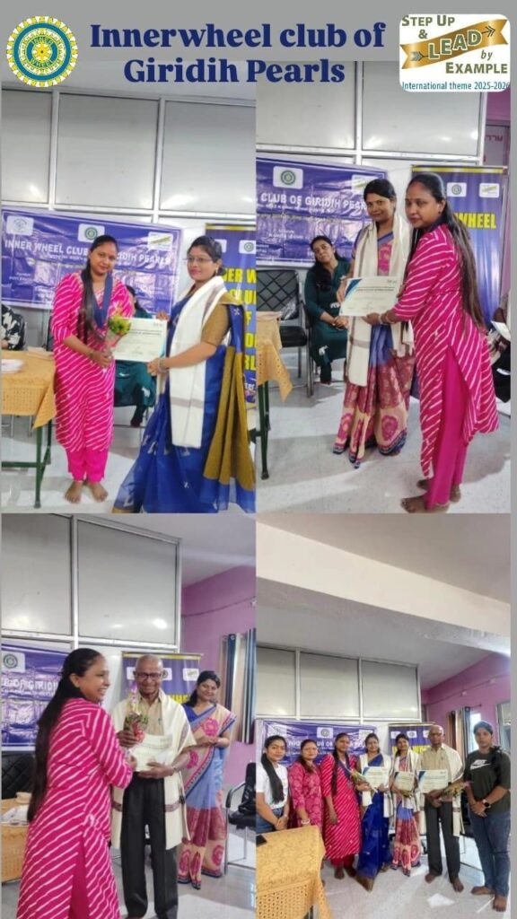 कार्यक्रम के दौरान इनरव्हील क्लब ऑफ गिरिडीह पर्ल्स की अध्यक्ष प्रीति भास्कर संपादक शृष्टि सिन्हा, सदस्य मृदुला शर्मा, नेहा सिंह समेत कई अन्य सदस्य भी मौजूद रहे। इनरव्हील क्लब ऑफ गिरिडीह सनशाइन की अध्यक्ष कविता राजगढ़िया एवं सचिव स्मृति आनंद विशेष रूप से उपस्थित थीं।