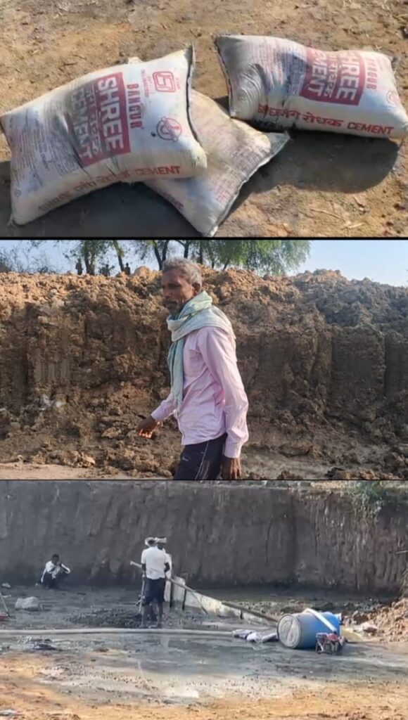 ग्रामीणों के अनुसार, चेकडैम निर्माण में Dalmia Cement की बजाय “श्री जंग रोधक” सीमेंट का उपयोग किया जा रहा है। उनका दावा है कि ठेकेदार की मौजूदगी में एक प्रकार की सामग्री दिखाई जाती है, जबकि ठेकेदार के साइट से जाते ही दूसरी सामग्री का इस्तेमाल किया जाता है।